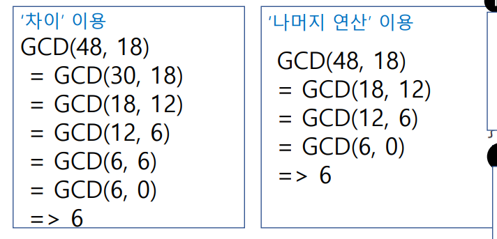 - 반복해서 나머지가 0이 될 때까지 진행하면 최종적으로 GCD가 나옴
